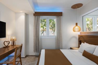 Tall palm trees and stunning tropical gardens create a serene and picturesque environment. Stylish and modern, the resort was designed by one of the World’s Top 50 designers and offers exclusive comfortable & stylish rooms, and suites with private pools or indoor Jacuzzi. The resort is ideal for couples and families, offering unparalleled design, natural beauty and a unique beach location.